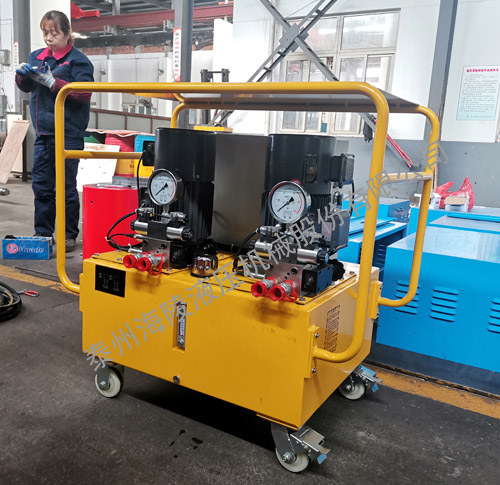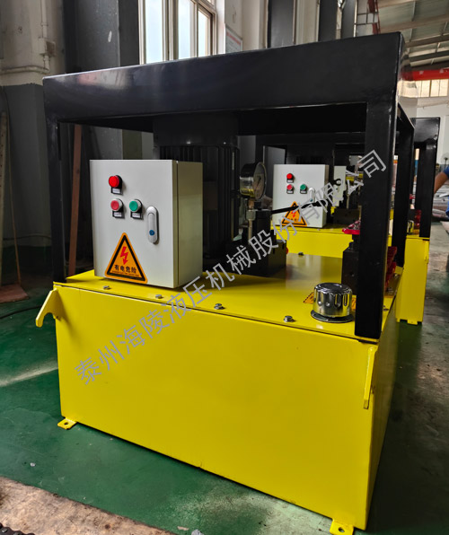 超高压液压泵站主要由三相电机、减功阀,高低压溢流阀、轴向柱塞泵、手动换向阀、液控单向阀、综合阀、油箱、等部件组成,具有保压、调压、过载保护等功能,为设备提供液压动力源。