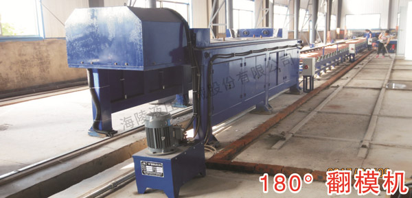 1. 翻转装置:用于将混凝土构件翻转,以便进行脱模操作。它通常由液压缸或电动机驱动,可以旋转一定角度,将混凝土构件从水平位置翻转到垂直位置。