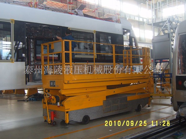 500KG剪叉式液压升降平台应用于中车南宁轨道交通