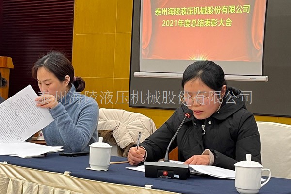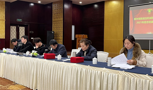 董事长丁克芳主持会议并作出重要指示:2021年注定是一个不平凡的一年,全体职工不畏艰难,抗击疫情;无私奉献,迎难而上;一步一个脚印为公司的稳步发展做出巨大贡献。在外部环境极为艰难的情况下,使公司业绩逐步稳定增长,迈上新的台阶!企业客户受众面大幅扩展,得到越来越多的认可,这些都离不开全体职工的辛勤奉献!在新的一年中海陵液压将继续精益求精,升级技术、优化创新产品;加大研发力度,加大研发资金投入;加快产品升级、更新换代的步伐;坚持科学发展,注重安全生产;提高职工的福利待遇,提升职工技能素养!在往后的工作中,不断提升企业品牌、为客户创造价值。这也是全体海陵人的不懈追求!